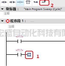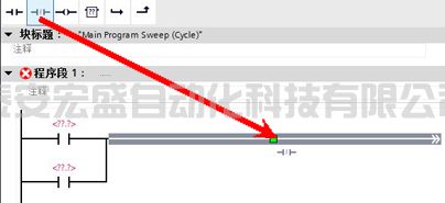 ----3.選中下面的常開觸點右側(cè)的雙箭頭,點擊收藏夾中的向上箭頭,連接能流: