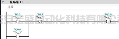 11.我們現(xiàn)在開始編輯一個自鎖程序:輸入點I0.0 用于啟動電機,I0.1用于停止電機,電機啟停由輸出點Q0.0控制。