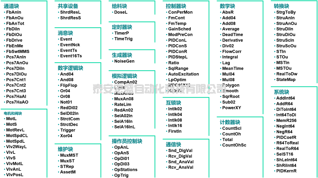 下圖為PCS 7 V9.1 SP1 版本中APL庫提供的所有功能塊,細(xì)分可以達(dá)19個小類別。