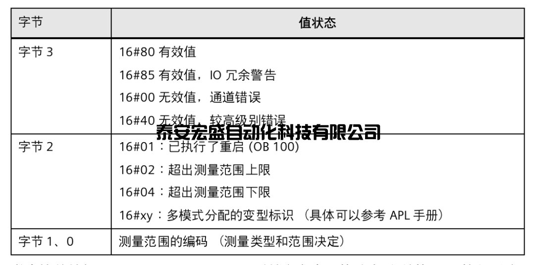 舉個簡單的例子Mode= 16#80010203時的含義為:值狀態(tài)“有效值”且已執(zhí)行重啟,測量類型為電流信號,測量范圍為 4 mA 至 20mA。