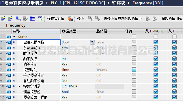 ②切換到自動模式時:根據(jù)現(xiàn)場的邏輯設定變頻器頻率