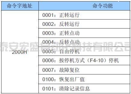 要對變頻器的頻率進行命令設置,只要對其內(nèi)部地址2000H(十進制8192)。因此正傳的時候?qū)懭?,反轉(zhuǎn)寫入2,自由停機寫入5。