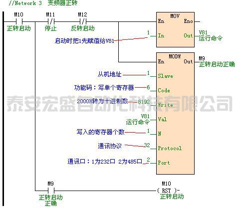 通過以上設置我們可知,本例控制匯川變頻器采用Modbus通信協(xié)議,通信資料格式為:9600 N 8 2 ,變頻器的地址為1。然后對相應的地址寫值就可以了。