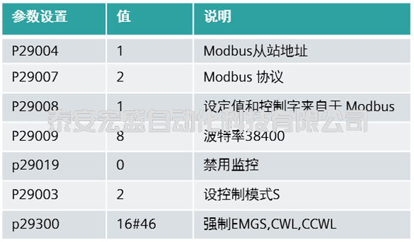PTI 版本 V90 可以通過 MODBUS RTU 通信實(shí)現(xiàn)速度控制,首先根據(jù)下表3設(shè)置好對應(yīng)的參數(shù):