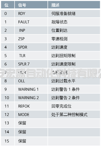 注意:固件版本V1.07(不含)以前的版本,速度設(shè)定值地址是 40104 和40105,以下表格為控制字和狀態(tài)字的功能說明: