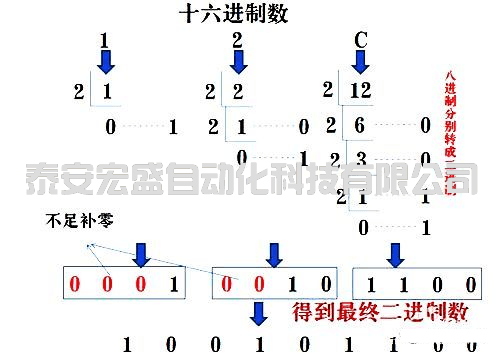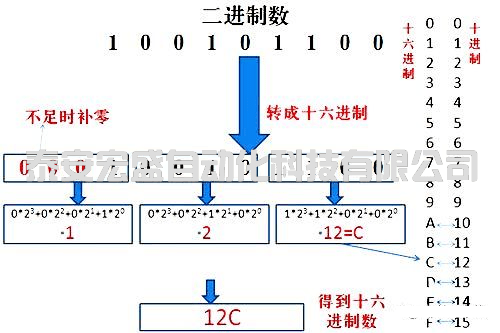與二進制轉八進制方法近似,八進制是取三合一,十六進制是取四合一。(注意事項,4位二進制轉成十六進制是從右到左開始轉換,不足時補0)。如圖: