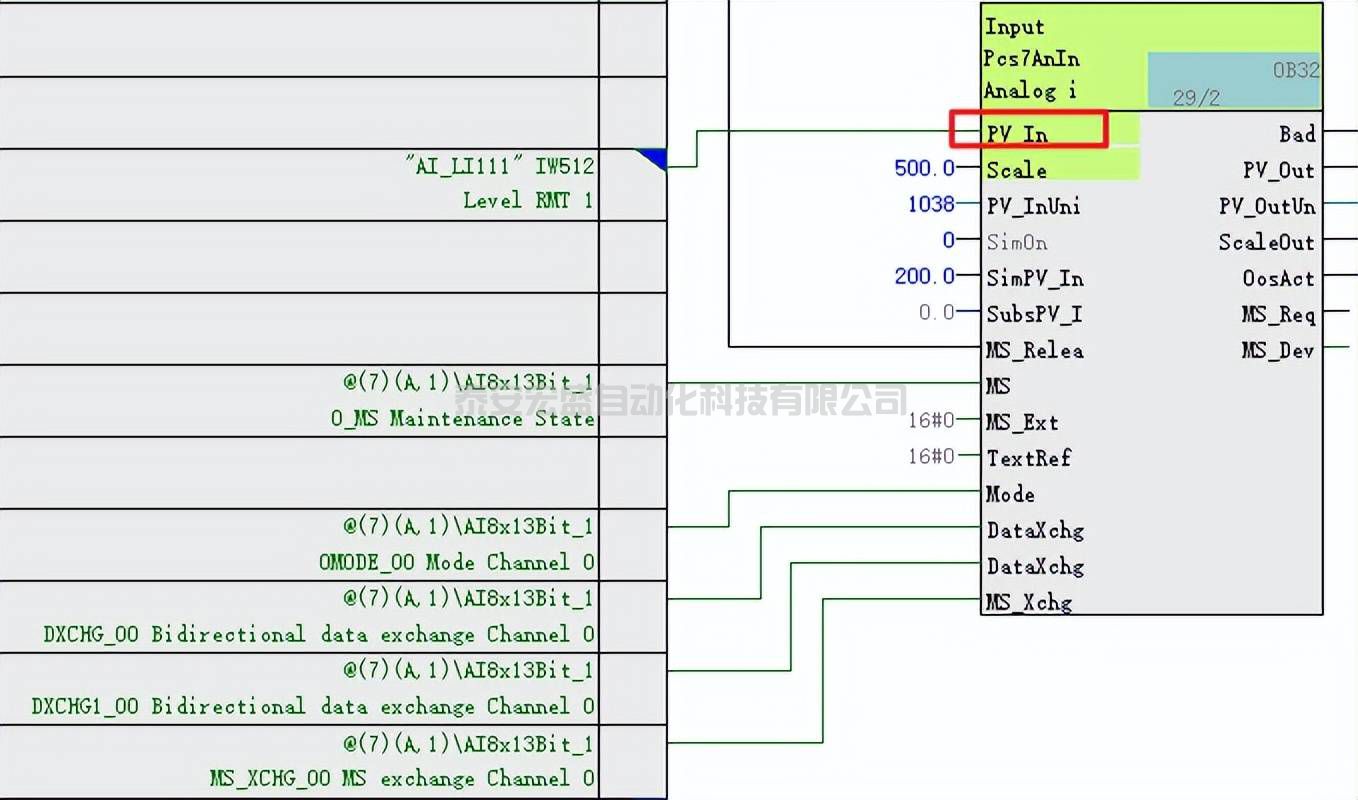 如下圖所示,是標(biāo)準(zhǔn)通道塊Pcs7AnIn的典型應(yīng)用。只需連接PV_In管腳就大功告成。