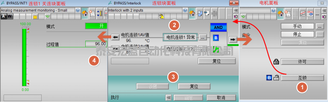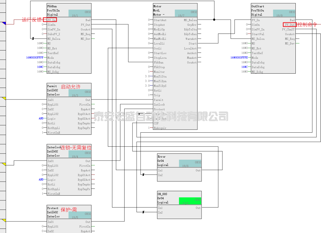 以電機(jī)模板為例,工藝塊搭配互鎖塊不僅可以實(shí)現(xiàn)連鎖功能,還可以實(shí)現(xiàn)連鎖旁通、連鎖首出、輔助值功能等。