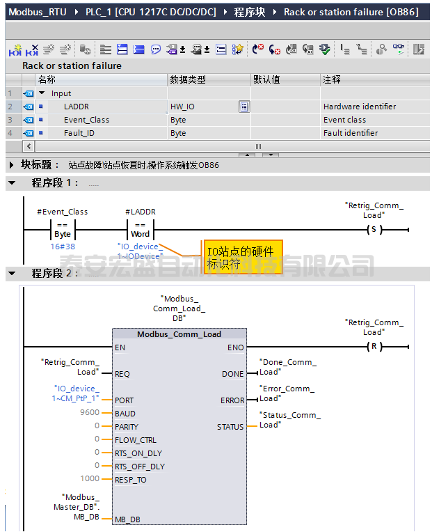 圖17. OB86中調(diào)用Modbus_Comm_Load 指令